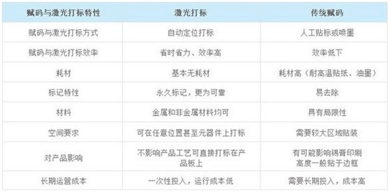 以下為電路板激光打標(biāo)和傳統(tǒng)賦碼方式的優(yōu)劣勢(shì)對(duì)比