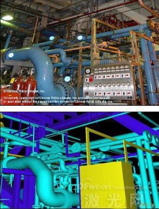 特點: 信息采集快速; 數據保存更完善、詳實; 可實現文物在計算機中的真實再現; 為古跡的修繕和復制提供數據基礎; 測繪簡單,不用裝備梯架就可以完成測量,減少工人勞動強度; 實現傳統測繪手段無法操作或記錄對象的測繪; 非接觸測量,充分保護文物或發掘現場。 三維激光掃描――工廠、大型結構、裝備應用 針對復雜的工廠環境、變電站、特大鋼結構、復雜的大型裝備,三維激光掃描儀提供了全新的測量方法,可以快速完成基于完整特征面的測量,從而采集和記錄下完備的相關信息。針對工廠和管道的應用,三維掃描處理軟件提供了專業的模塊完成模型建立,虛擬測量,分析計算等功能。 通過三維激光掃描儀的基礎掃描,可以搜集機構或作業現場的完整三維信息,這些重要的基礎信息為改建、設計、檢測提供真實、高精度的數據源。基于此真實場景的設計讓設計方案制訂更全面、準確,并可以將設計模型與三維場景進行結合,以對設計進行虛擬校驗,干涉檢查,避免返工,提高效率,縮短工期,并節約成本。 工廠 三維激光掃描系統可以提供真三維、真尺寸的工廠改造數據模型。加快設計的進度,在真實尺寸下得到最佳設計方案。