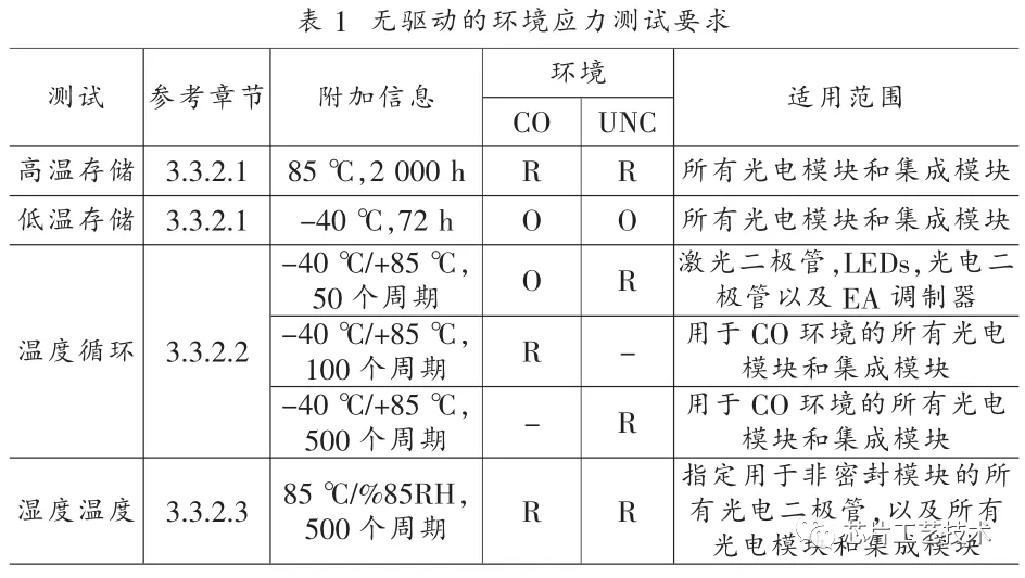 通過(guò)對(duì)芯片的內(nèi)部結(jié)構(gòu)進(jìn)行改進(jìn),調(diào)整芯片表面結(jié)構(gòu)和有源區(qū)發(fā)熱層,研究采用芯片倒裝貼片技術(shù),使芯片的主要發(fā)熱面通過(guò)焊接層后直接和熱沉相接, 激光器散熱可以提高20% 或者更高的散熱效率;因?yàn)楣庑酒男阅芎蜏囟葟?qiáng)相關(guān),溫度越高,波長(zhǎng)漂移越厲害,光輸出功率也會(huì)隨之下降或者飽和,通過(guò)倒裝貼裝方式可以大幅度提高散熱效果,芯片的光電輸出更加穩(wěn)定,整個(gè)激光器的性能也得到大幅度提高,最終性能需要達(dá)到國(guó)軍標(biāo) GR-468-CORE 的性能要求, 部分指標(biāo)見(jiàn)表 1 。