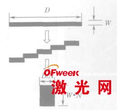 1.1、光束對(duì)稱(chēng)化 由于半導(dǎo)體激光陣列的輸出光束在快慢軸上的光束參數(shù)乘積極其不對(duì)稱(chēng),這使得半導(dǎo)體激光陣列的輸出光束很難被聚焦成小而圓的光斑從而將其藕合進(jìn)光纖系統(tǒng)。其中光束參數(shù)乘積(BPP)定義為激光光束束腰半徑和發(fā)散角的乘積,是衡量光束質(zhì)量好壞的重要指標(biāo),它反映了光束的聚焦能力。對(duì)于半導(dǎo)體激光一維陣列,其慢軸上的BPP值是快軸BPP值的100-1000倍。為了 提高半導(dǎo)體激光器的功率,往往將多個(gè)半導(dǎo)體一維陣列(bar)疊加,形成一個(gè)二維陣列,即半導(dǎo)體激光堆棧。但是堆棧的慢、快軸上的光束參數(shù)乘積仍然相差約兒十倍。 若想使半導(dǎo)體激光陣列的光束在快慢軸上的光束參數(shù)乘積均勻化,必須采取光束整形。將半導(dǎo)體激光陣列的輸出光束進(jìn)行分割、重排,通過(guò)減小慢軸方向、增大快軸方向的光束參數(shù)乘積的方法達(dá)到快慢軸光束參數(shù)乘積均勻化的目的。 光束整形原理如圖3所示。半導(dǎo)體激光陣列光束的尺寸為慢軸方向D.快軸方向W.將光束沿慢軸方向分割N.段,重排后光束的尺寸為慢軸方向D/N,,快軸方向W·N,使光束的光參數(shù)積BPP近似相等。